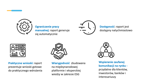 Raport jest dostępny w jednym z ponad 20 języków dostępnych na platformie i można go udostępniać interesariuszom na całym świecie.